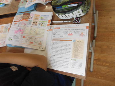保健分野、「健康の成り立ちと病気の発生要因」の単元、病気にならないためにふだん気をつけることを考える授業。「日本人の平均寿命の変化」や「日本人の死因の推移」等の資料を読み取りながら、病気の主体的要因と環境的要因を考えていました。