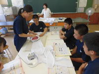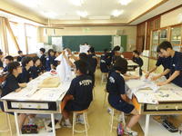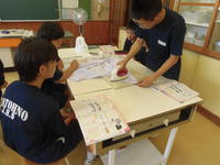 被服分野の「アイロンかけをしよう」の授業。適温を確認した後、Yシャツのエリ→カフス→そで→肩→前身頃・・と、かける部分を徐々に広げながら、グループごとに順番にアイロンがけを行っていました。「今日初めてアイロンがけしたぁ~」という生徒もいたようです。