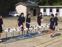 今朝の練習では、体の真下に足をつくことで、地面に効率よく力を伝えるフォームづくりの練習を、ハードルやラダーを使って、繰り返し行っていました。