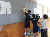 掲示物の張り替えを、担当の先生の指示で手際よく行っていました。