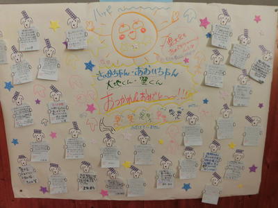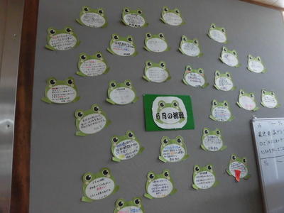 2年生教室前には、恒例(?)の、子どもたちの意気込みが掲示されています。