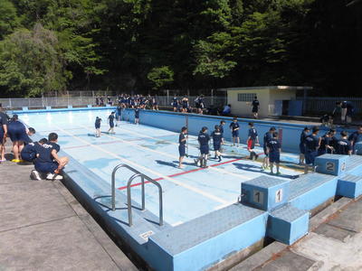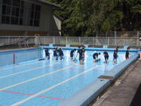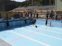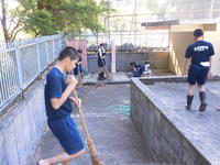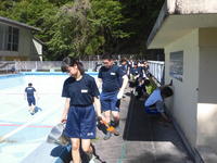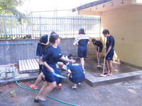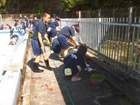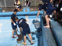 主にプールサイドや通路、プール内壁面等の清掃を行いました。暑い中でしたが、子どもたちは一生懸命作業に取り組んでいました。