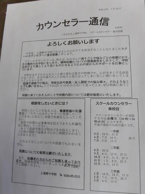 〔本日配付するカウンセラー通信:ご覧ください。〕
