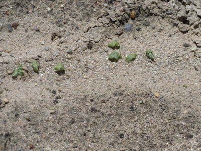 先週の16日(木)に種をまいた、和紙づくりに使用する「トロロアオイ」の芽が出ました!