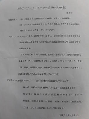 生徒会本部が、上中をよりよくするために全校生徒の意見を取り入れ、生徒会活動に生かしていくための活動です。