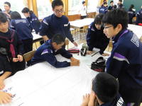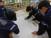 まだデザインを布に描いている段階ですが、大きさや配置などを工夫しながら取り組んでいました。