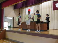(最初に、バドミントン春季大会の表彰を行いました)