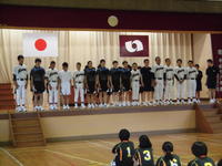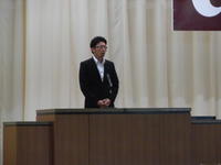 (選手入場、遠藤雄介体育文化後援会長の激励のあいさつ)
