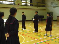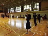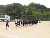 団長の説明の後、入場→一拍子→二拍子→三三七拍子→各部へのエール・・と、本番の流れに沿って練習しました。動きを入れた練習は、今日が初めてでしたが、1年生も元気よく練習に取り組んでいました。
