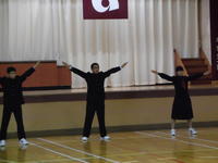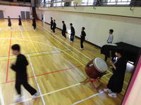 放課後、体育館で17日(金)の壮行会に向けた応援団の練習が行われました。