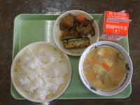 今日は日本型食事で「主食、主菜、副菜、汁物」がそろった給食です。