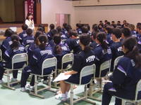 当日は、全校生徒で最初にいじめについて考えるDVDを視聴した後、映像の中で印象に残った言葉や、映像の中の誰にどんな声をかけてあげたいかの質問を、講師の先生が生徒に質問しながら、いじめについて改めて考える機会となりました。