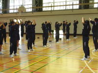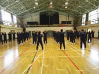 応援団の生徒は、昼休み体育館に集まり、団長の雲藤 匠くん(3年)の指示のもと、元気な声を体育館に響かせていました。
