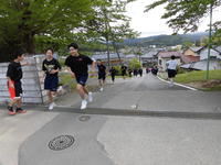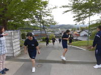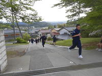 〔バドミントン部:こちらも坂道ダッシュ!この後体育館での練習です。〕