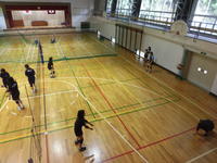 〔バレーボール部:基本の対人レシーブ練習。集中してやっています。〕