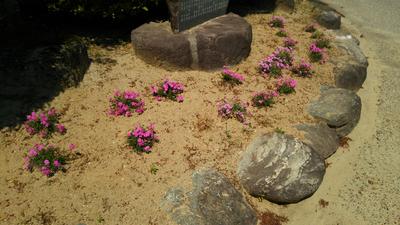 一年生が技術の時間に植えた校門脇のシバザクラも、見頃です。