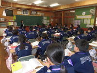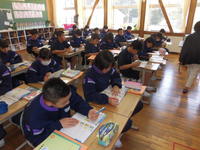 子どもたちは、先生の説明をしっかりと聞いて、一文字一文字ていねいに書いています。