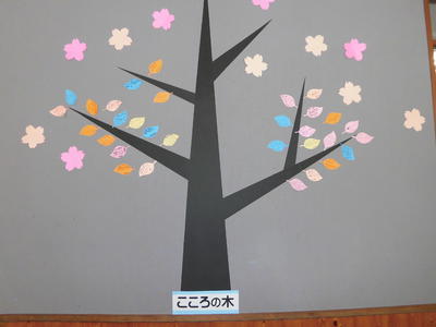 2年教室前の廊下に「こころの木」が掲示されており、各生徒の、2年生になっての抱負(決意)が書かれています。これから1年かけて、この木が青々と生い茂るよう、共に豊かに成長していきたいですね!
