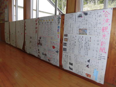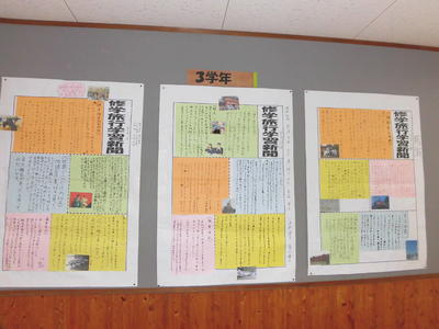 2・3年生は、先日の授業参観でも、子どもたちの報告会をお聞き頂きましたが、各教室前の廊下に、遠足及び修学旅行での学習をまとめた班ごとの新聞や、作文・写真などが掲示されています。どのまとめも大変分かりやすく、工夫された内容になっています。