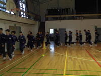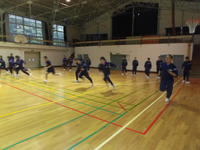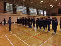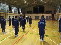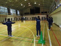 初日の今朝はあいにくの天候のため、体育館での始動となりましたが、顧問教師の指導のもと、元気よい声を体育館内に響かせていました。