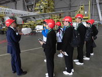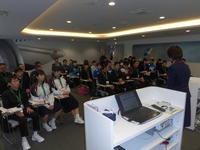 羽田空港内のJAL機体メンテナンスセンターへ。まずは、スクリーンを使っての説明を聞き、その後格納庫見学へ。飛行機の着陸の様子も、間近で見ることができました。