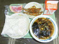 メニュー→わかめうどん(ソフトめん+わかめかけ汁)、牛乳、ししゃもの甘酢かけ、グレープフルーツ