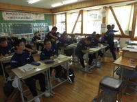 本校は土砂災害特別警戒区域にあることから、毎年「土砂災害想定」の避難訓練を実施しています。本日6校時、遠野分遣所長様他4名の職員にお出でいただき、避難訓練を実施しました。
