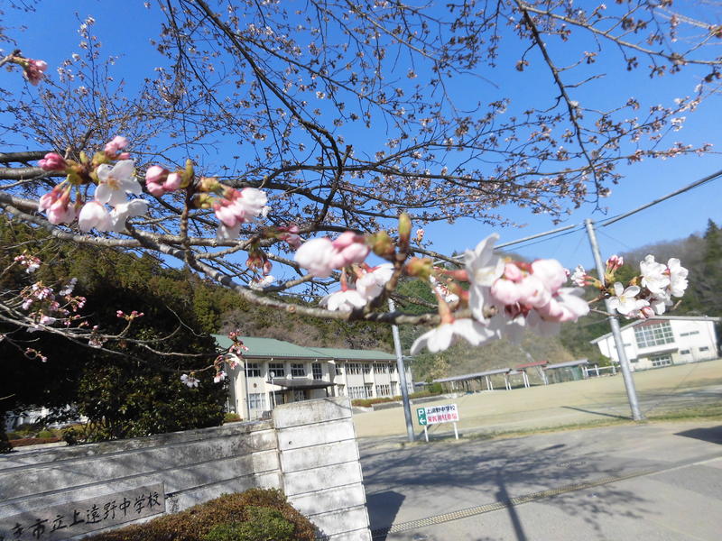 日中の暖かさで、校門脇の桜も、一気に五分咲きほどになりました。