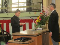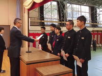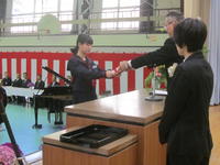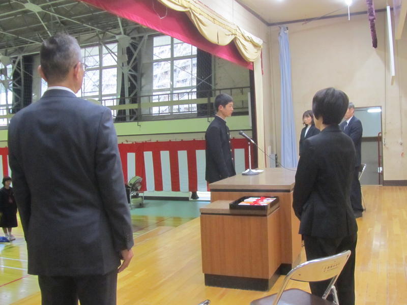始業式では、代表生徒に教科書が授与されました。大切に使い、勉強に励んでください。