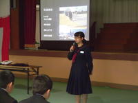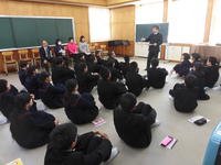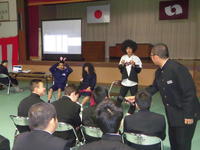 上遠野中学校生活心得を、クイズ形式で説明する生徒会長。