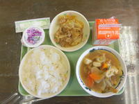 メニュー→ごはん、牛乳、ホイコーロー、しょうゆけんちん汁、ぶどうゼリー