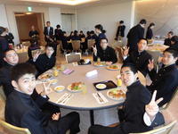 朝食は、バイキング。ご飯よりもパンを選んだ生徒が多かったようです。