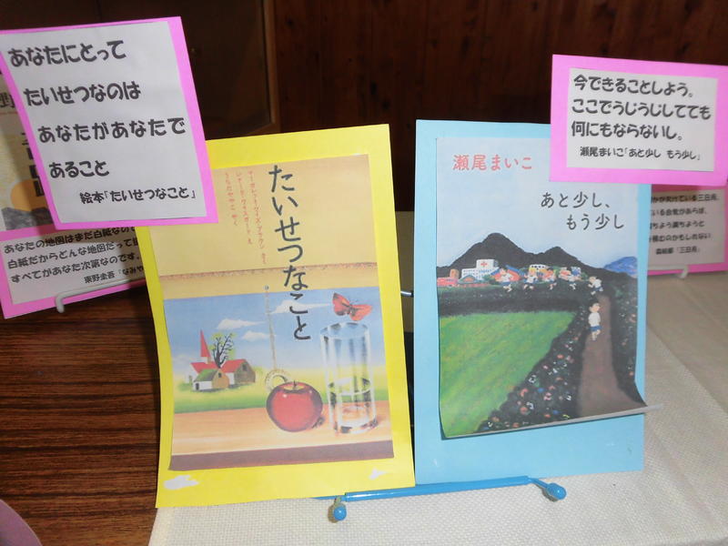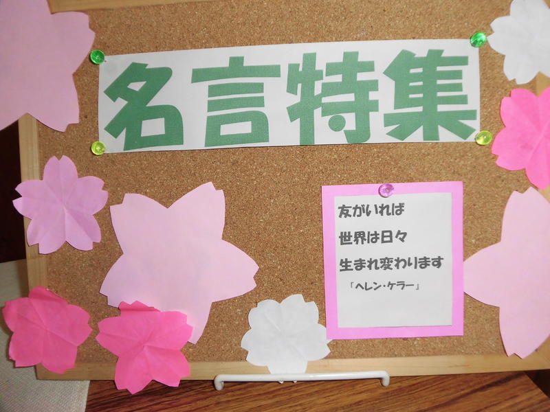 1回図書コーナーが模様替えです。希望と勇気をもたらす名言特集。1,2年生の皆さん、気持ちを新たに来年度を迎えましょう。