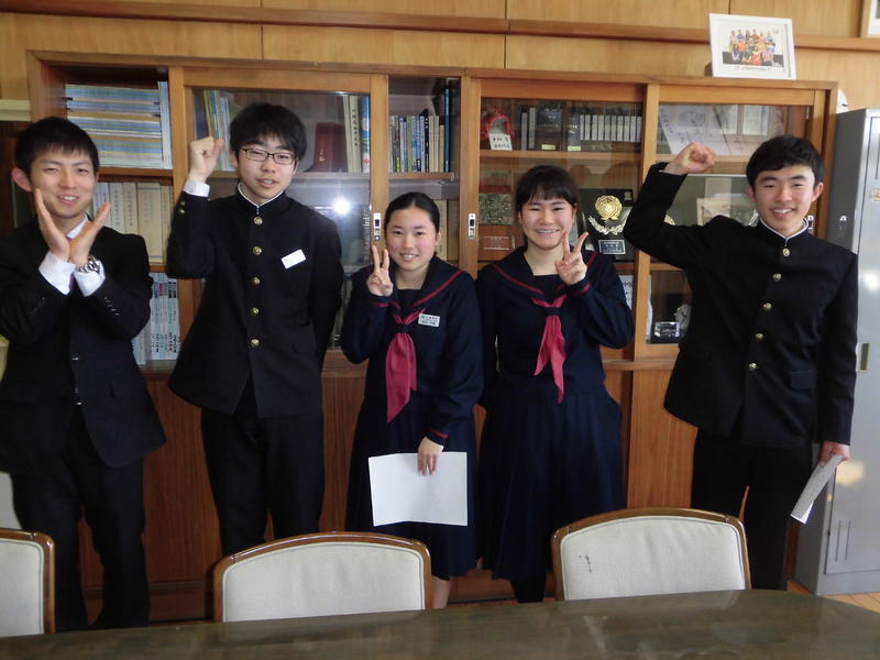 合格した3年生が、校長室に報告に来てくれました。みんな、最高の笑顔です。