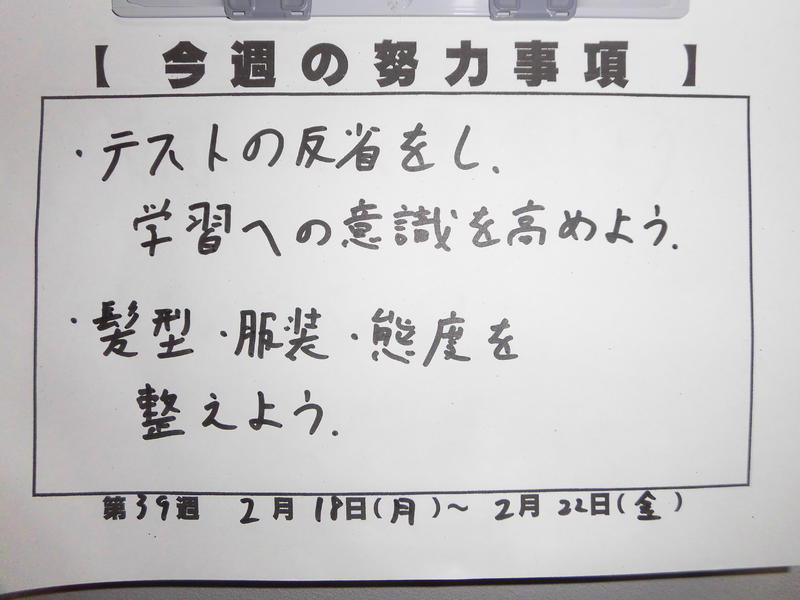 今週は、1,2年生の学年末、後期テストの結果が返されます。点数が何点、だけでなく、これまでの学習状況を振り返り、理解が不十分なところはしっかりとやり直すことが大切ですね。