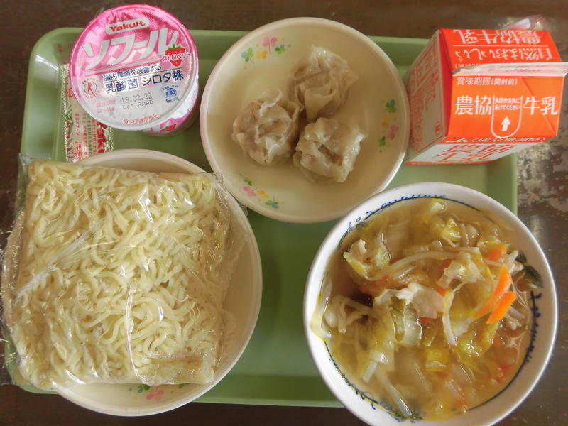 塩ラーメン (中華ソフトめん) シュウマイ 牛乳 イチゴヨーグルト