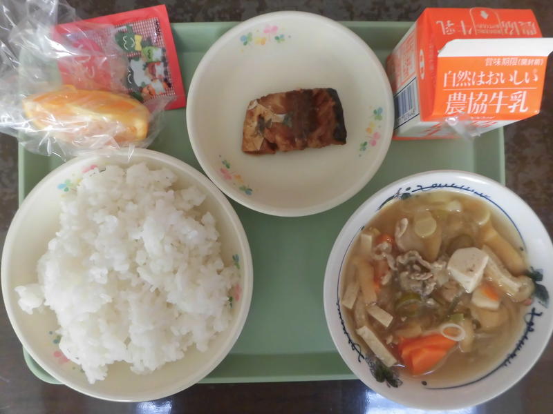 さばの味噌煮 呉汁 ごはん 野菜ふりかけ 牛乳 デコポン