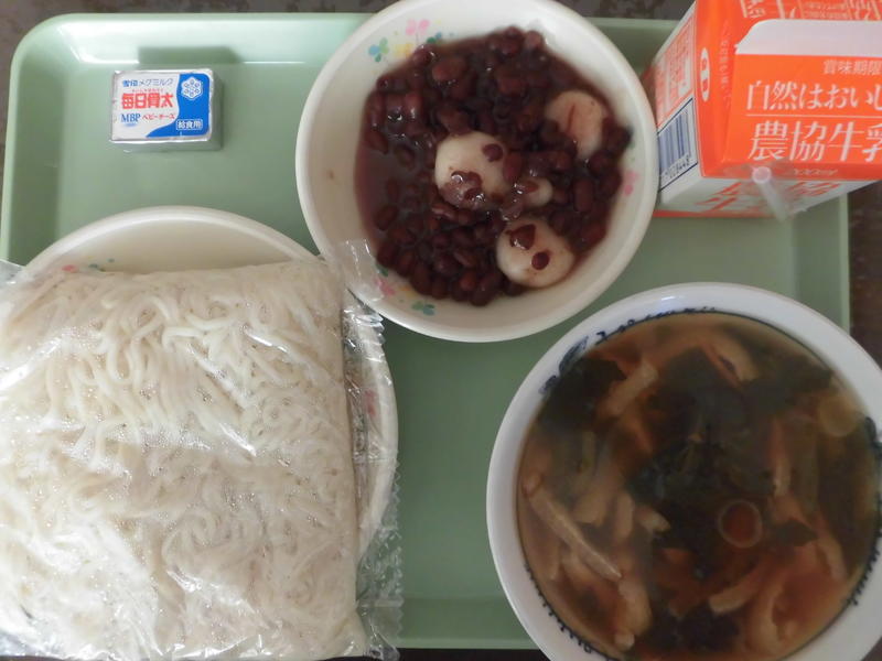 五目うどん (ソフトめん) あんころ餅 牛乳 チーズ