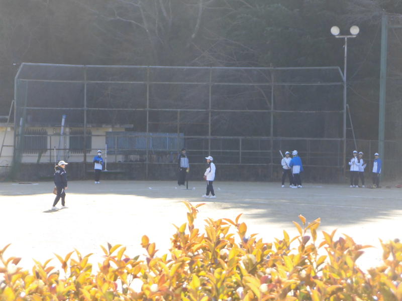 2年生は体育の授業で校庭でソフトボール。お互いに声を掛け合いながら元気にプレーしています。