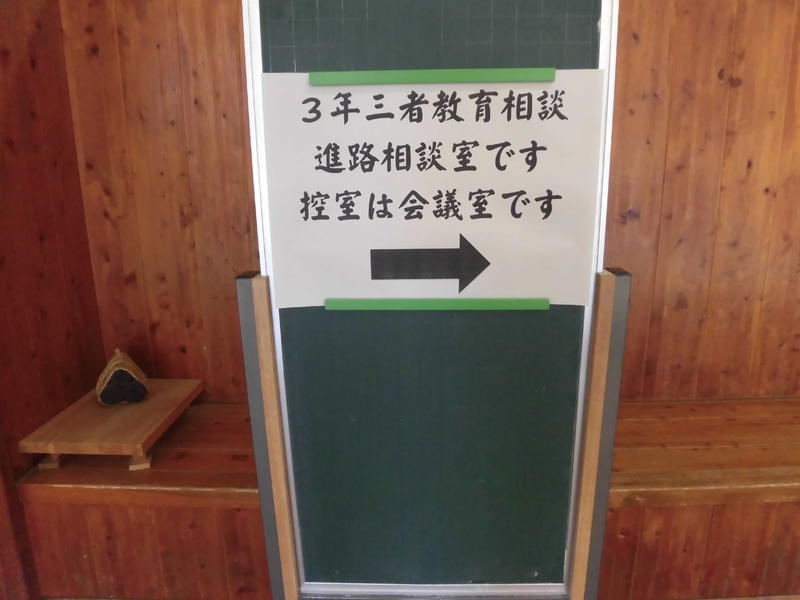 1月21日(月)~24日(木)3年生の三者教育相談を行っています。今回の教育相談は、希望する生徒のみです。よりよい進路選択をめざして、県立高校Ⅱ期の最終決定を中心に話し合います。目標が決まったら、残り少ない日々を悔いのないように頑張りましょう。