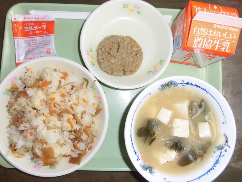 さんが焼き 五目ごはん 大根のみそ汁 牛乳・コーヒー