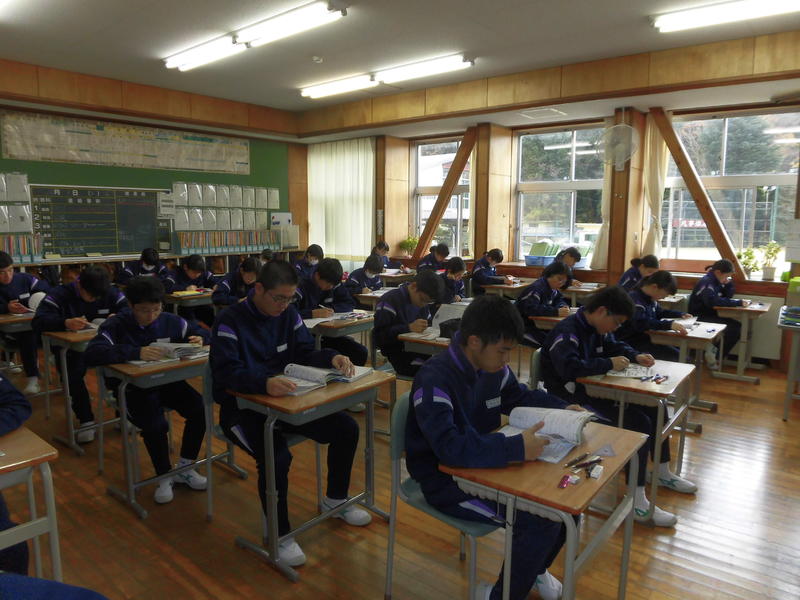 ※写真は、昼休みの自主勉強。最後のひと教科、1点でも多く・・・