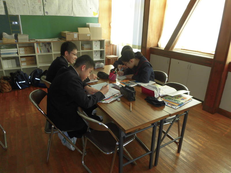 控え室の会議室で、3年生は時間を惜しんで勉強です。