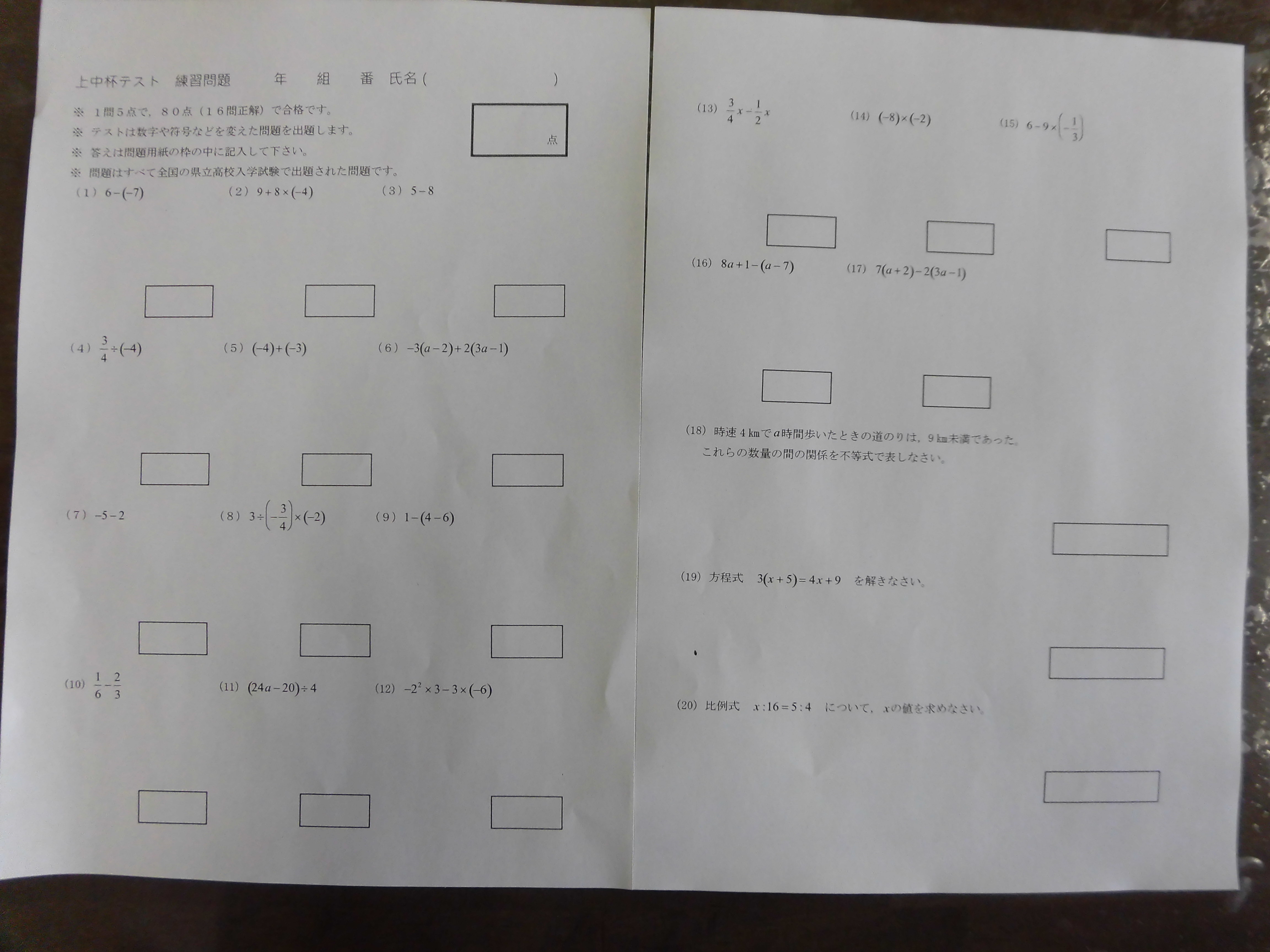 上中杯テストは、しっかりと勉強すれば100点満点取れる問題を実施し、個人は「満点賞」クラスは平均点を競い「最優秀クラス賞」をめざします。当たり前の勉強をやり抜く学習習慣と、お互いに励まし合う学習集団を育てることをねらいとしています。