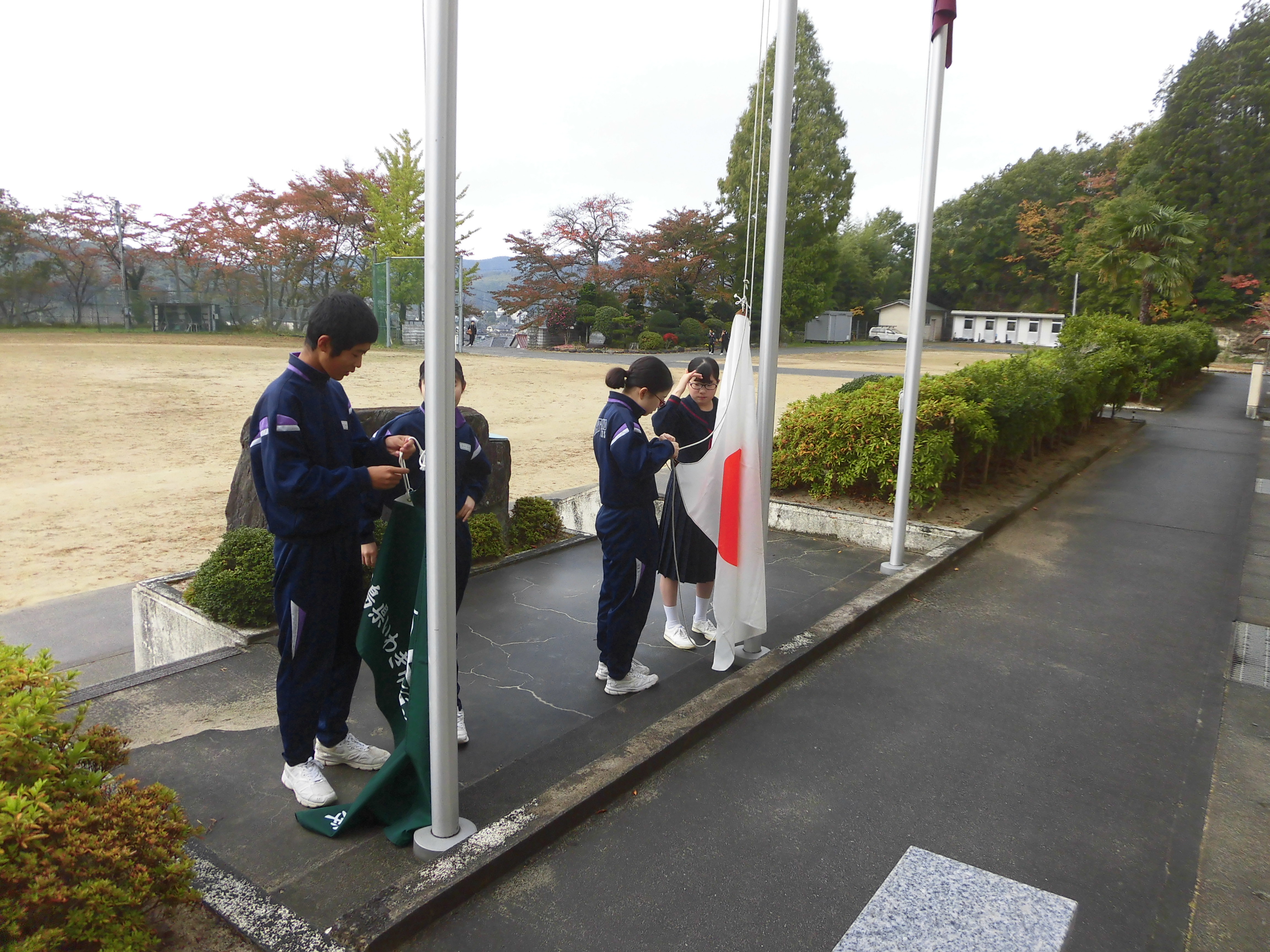朝の旗揚げです。生活委員会の皆さん、毎朝ありがとうございます。生徒会本部も手伝います。