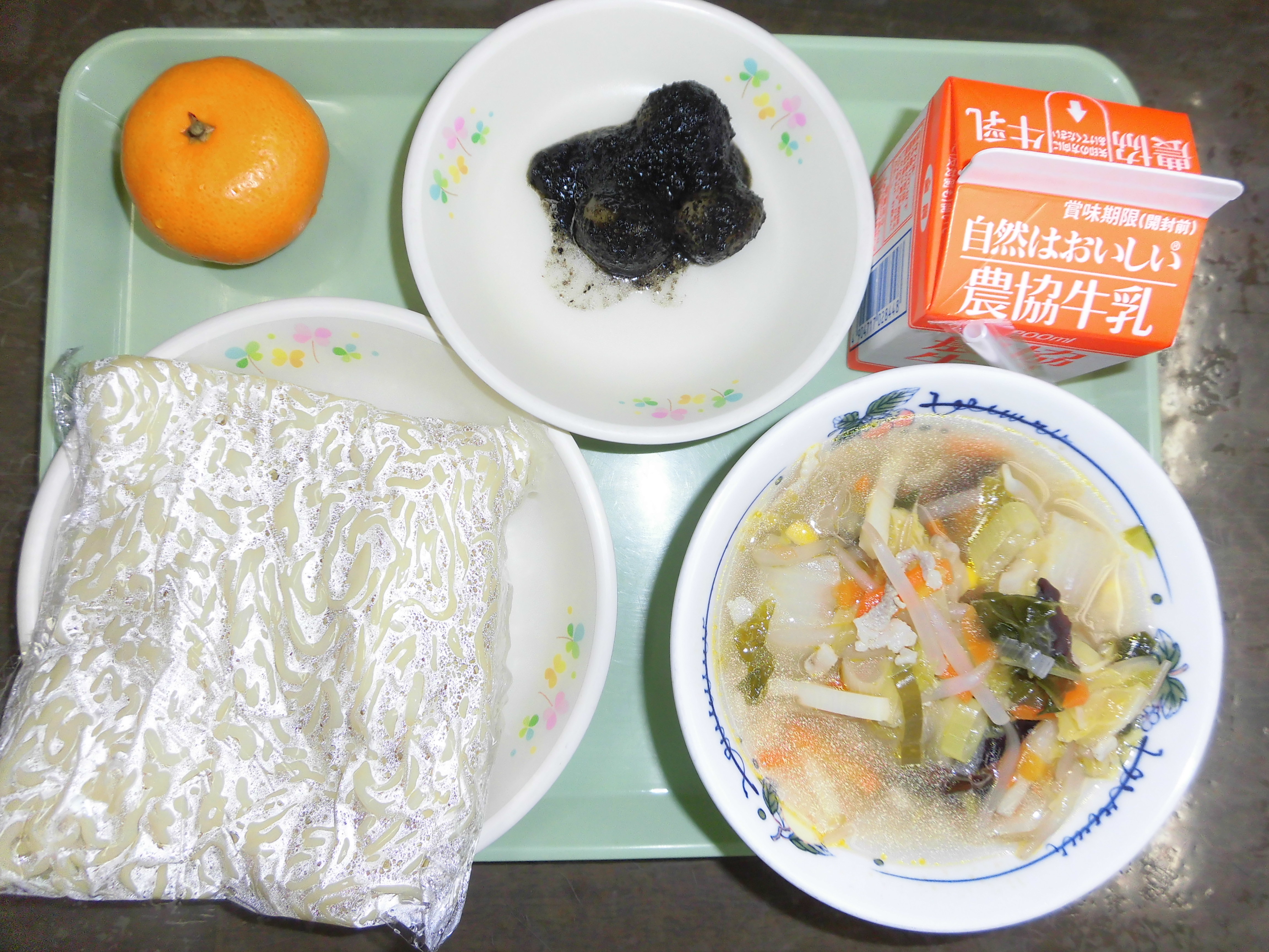 塩ラーメン(ソフトめん) ごまだれもち みかん 牛乳