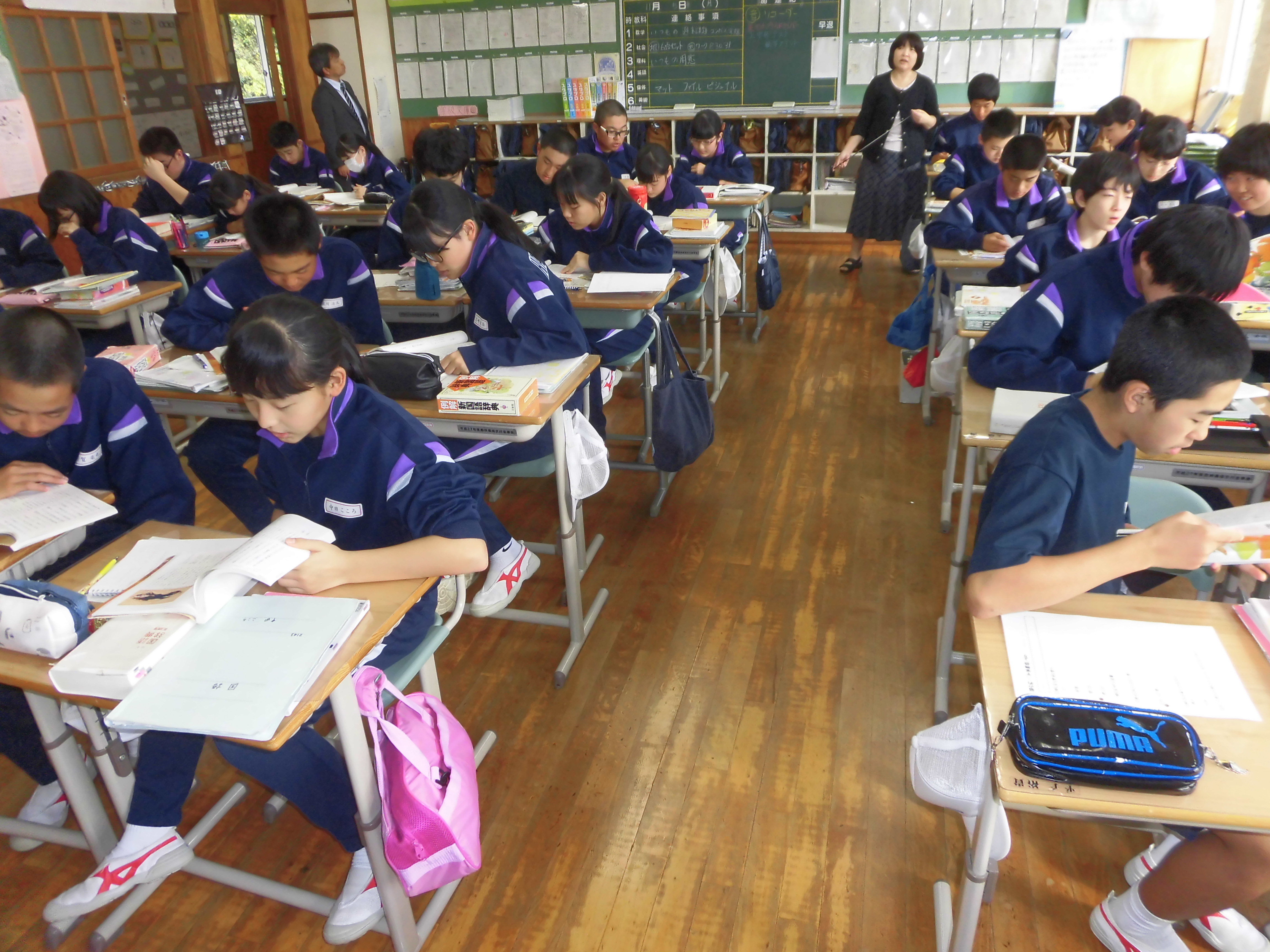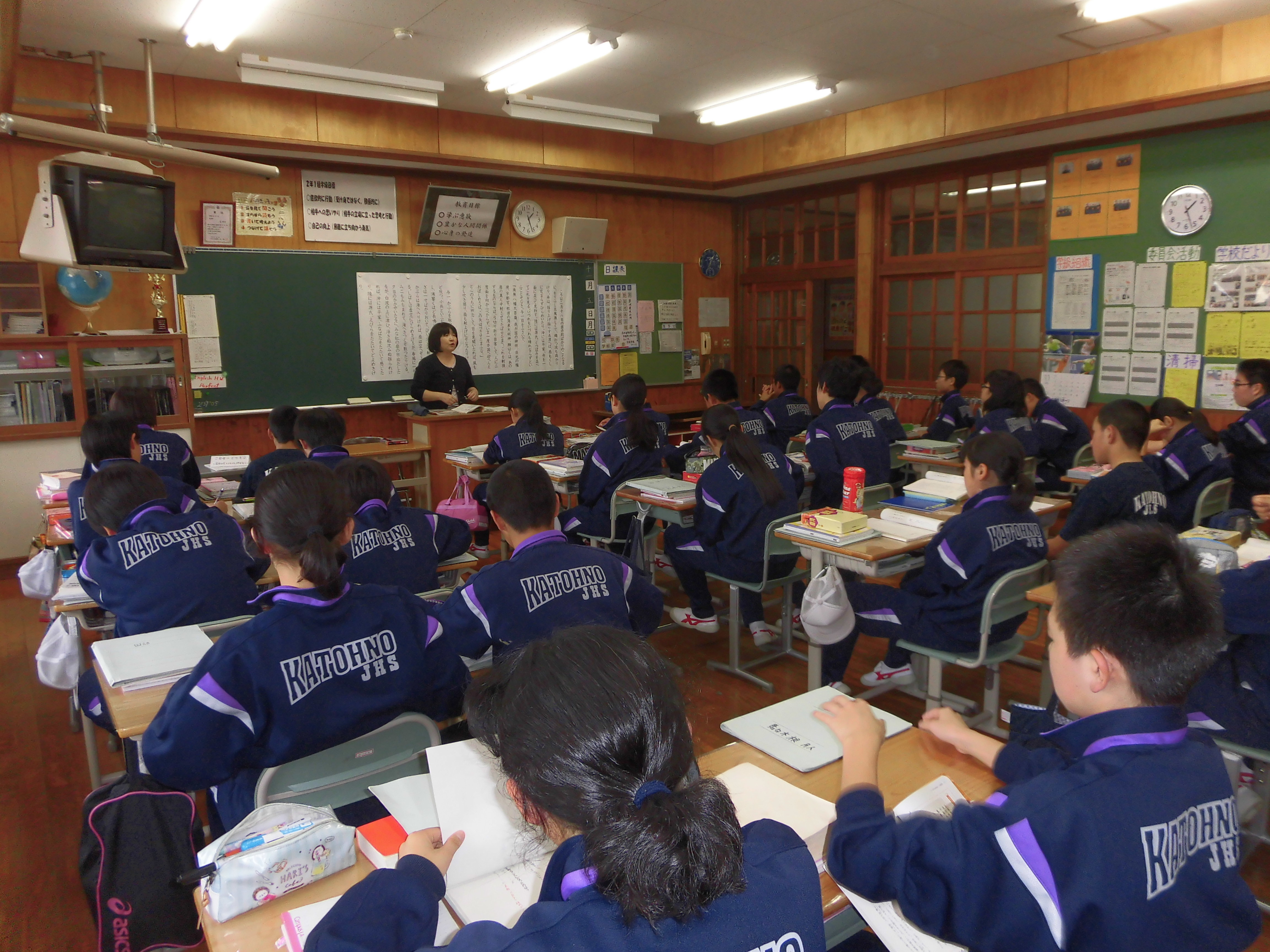 国語科の瀬谷 智子先生が、2年1組で校内参観授業を行いました。古典「平家物語」から与一が「扇の的」を射る場面でした。