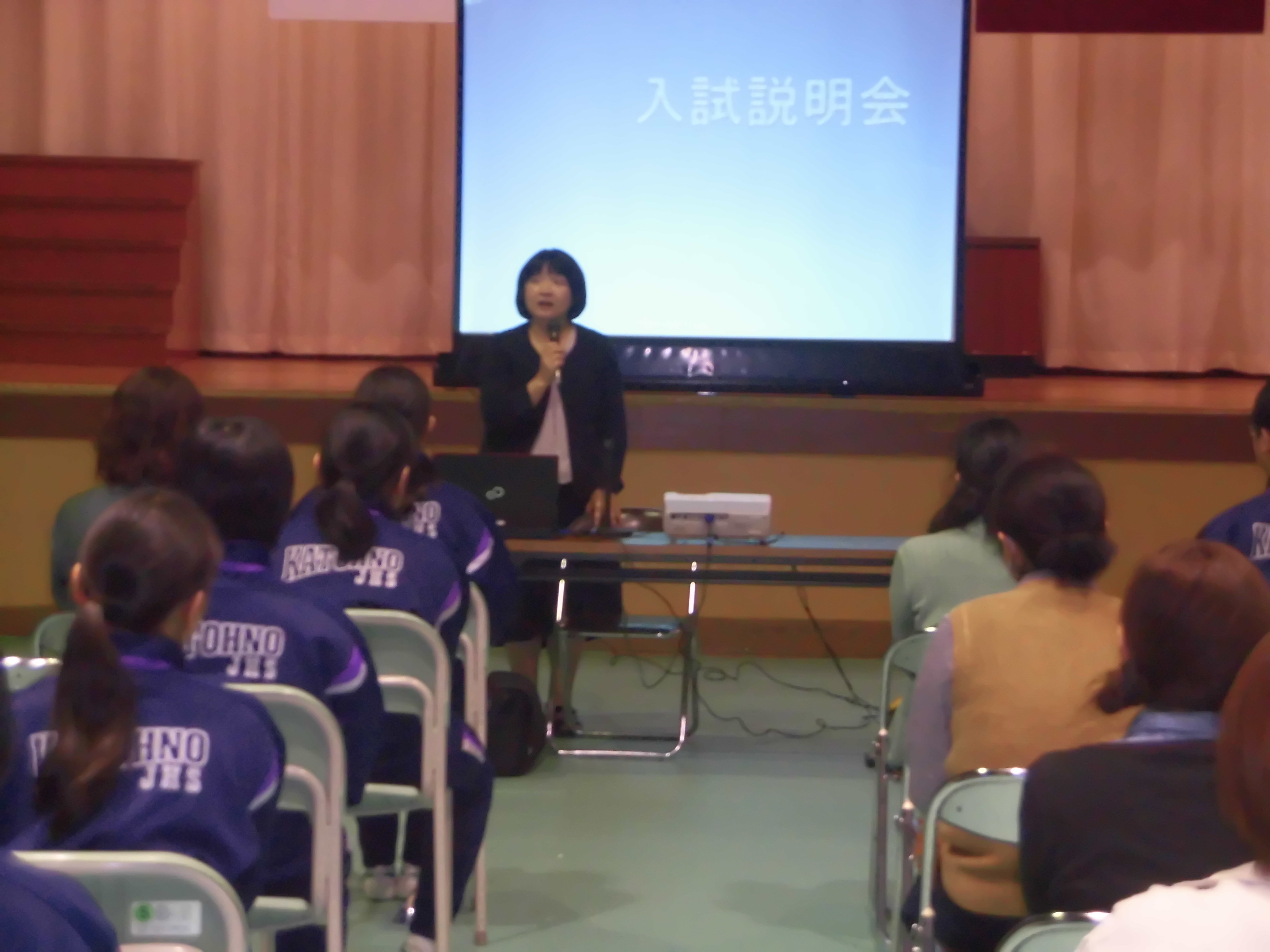 3年生生徒、保護者を対象に高校入試説明会がありました。進路指導主事の瀬谷 智子先生より、平成31年度県立高校の入試日程等の説明がありました。