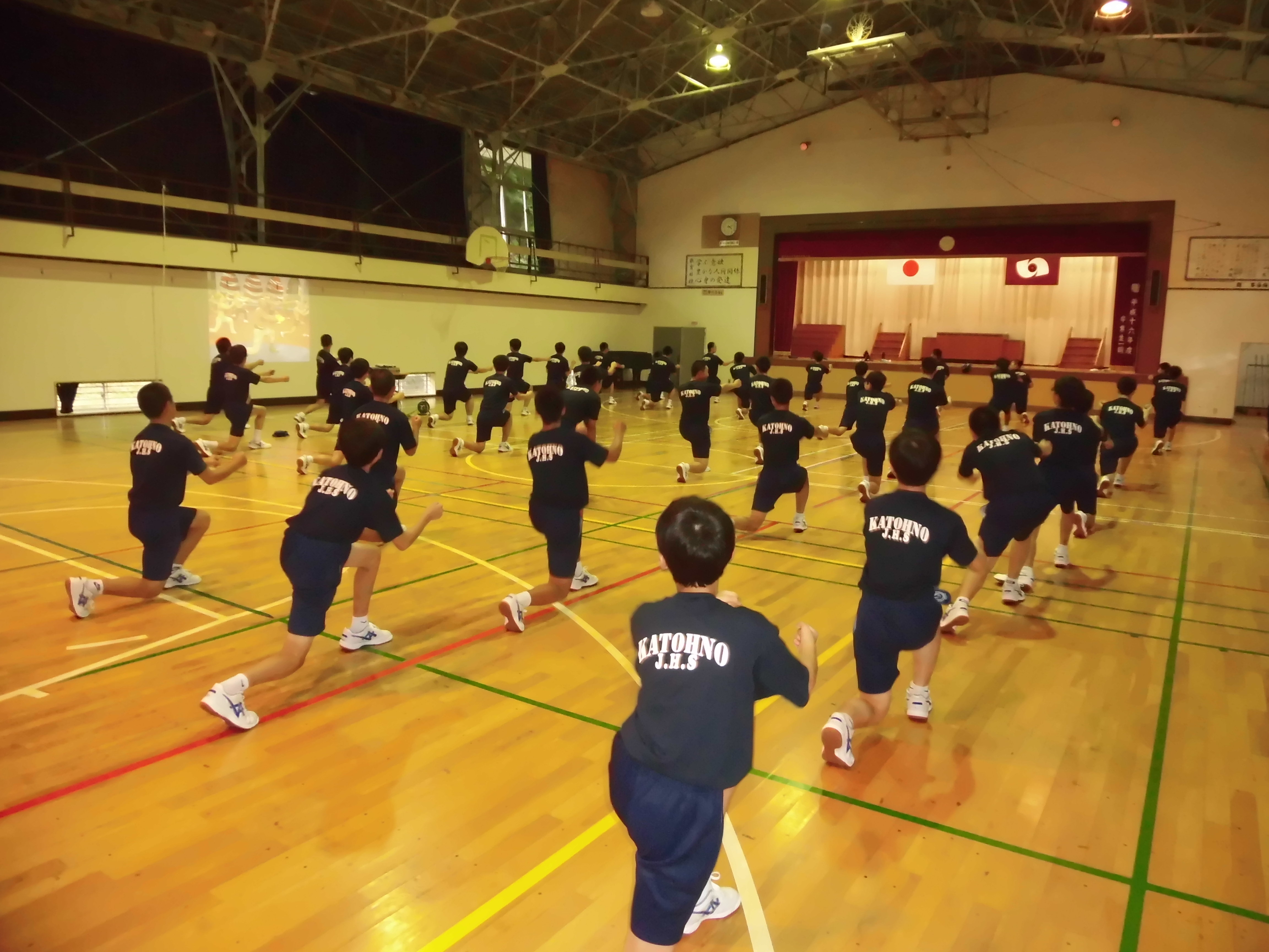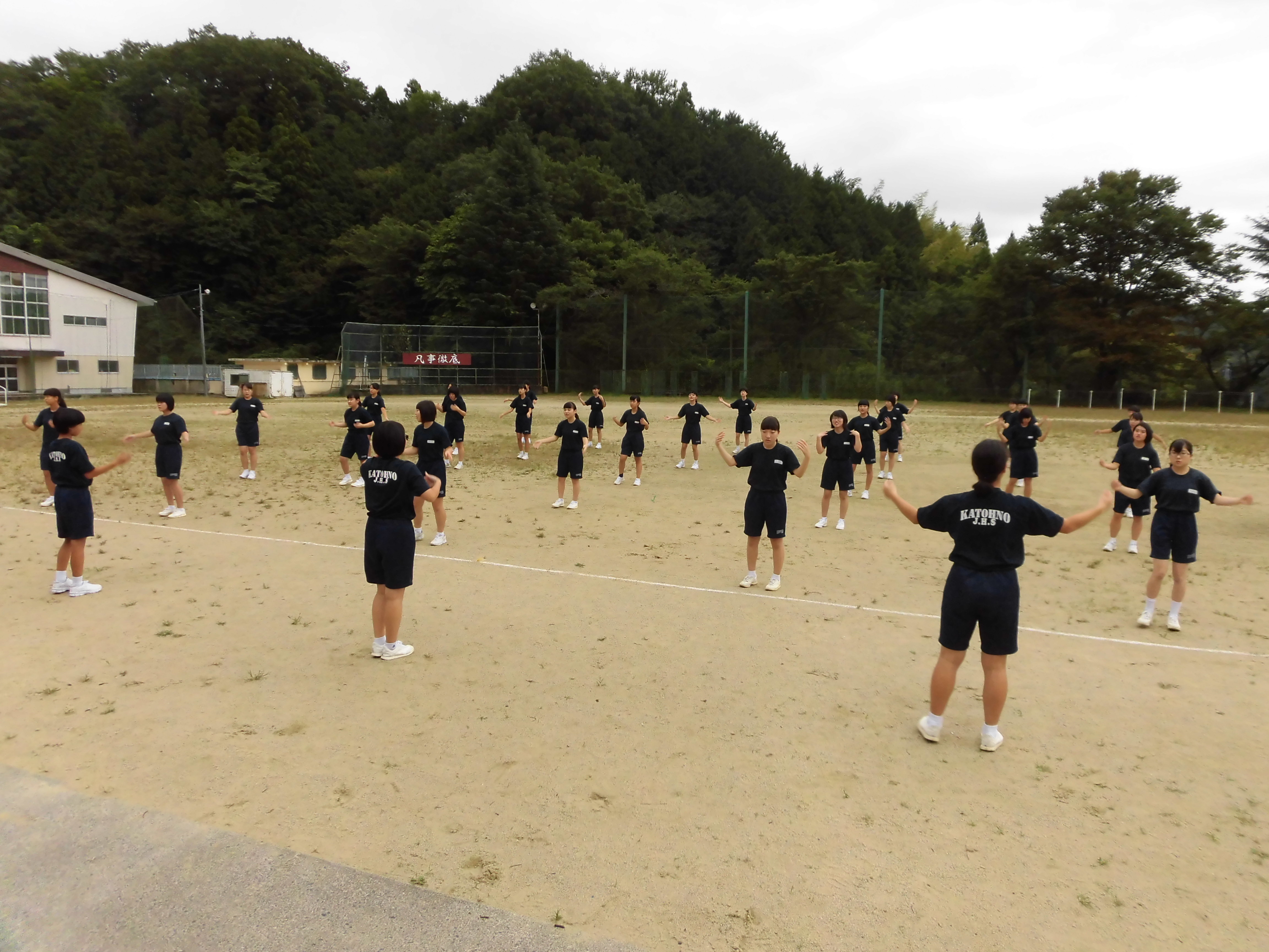 「健やかでたくましい体づくり」に、将来、自分から進んで取り組めるように「体力向上タイム」をスタートしました。学校行事や定期テスト等との日程を調整し、生徒の負担加重にならないように体力作りを進めます。