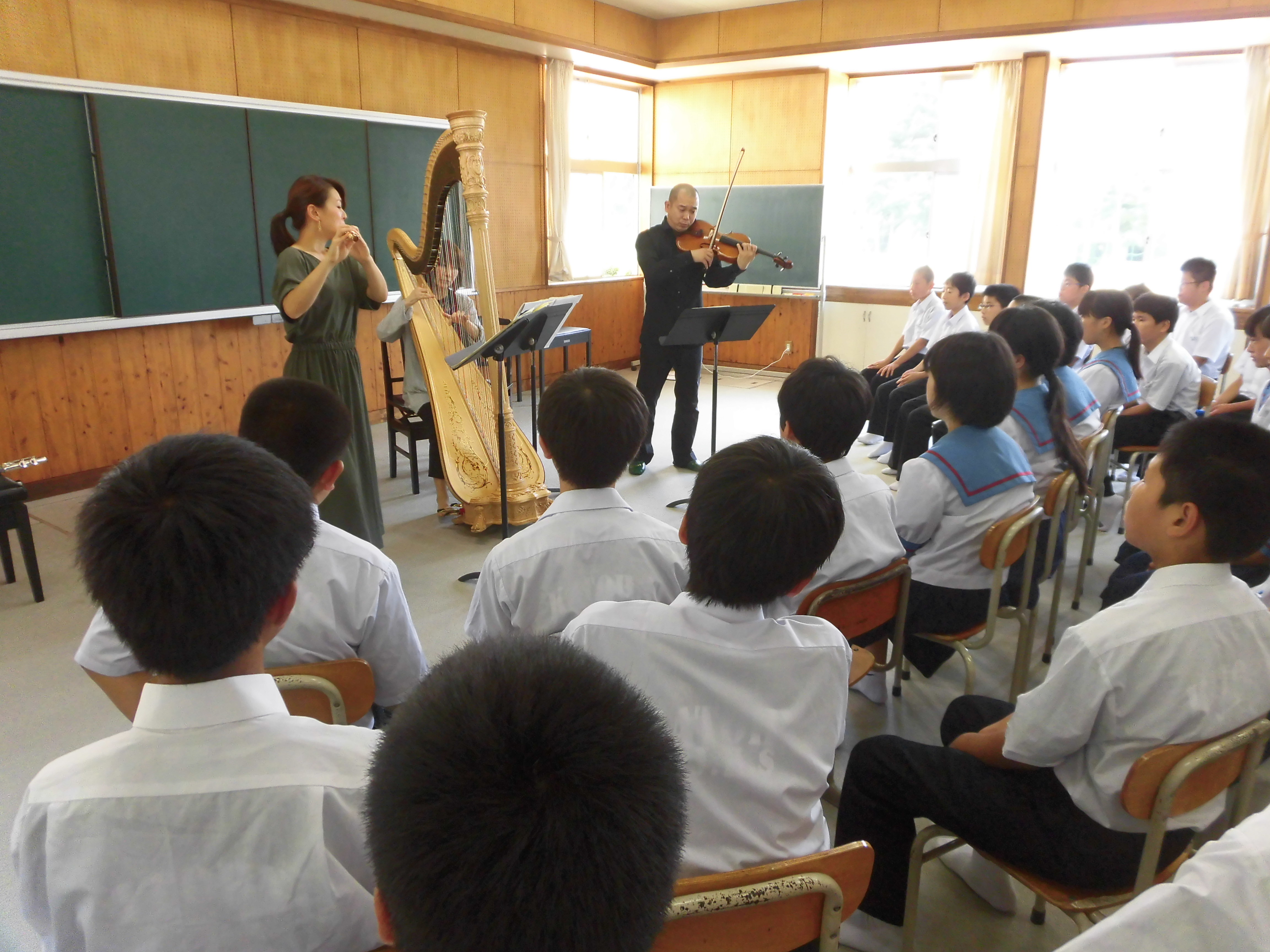NHK交響楽団のメンバーによる音楽鑑賞を楽しみました。生徒の皆さんにとっては、プロの演奏を間近で聴くことができて貴重な体験でした。